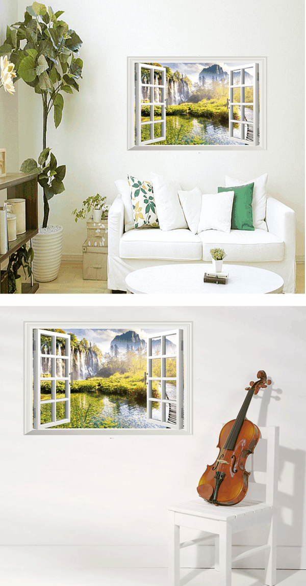 ウォールステッカー 窓 風景 植物 トイレ おしゃれ お風呂 アイビー ウォールシール 北欧 かわいい インテリア ステッカー グリーン 緑 雑貨 リース 花 木 フラワー アルファベット 和柄 和室 森林 山岳 山 雲 滝 葉 枝 バスルーム リビング 洗面所 大きい窓 玄関 浴室 簡単