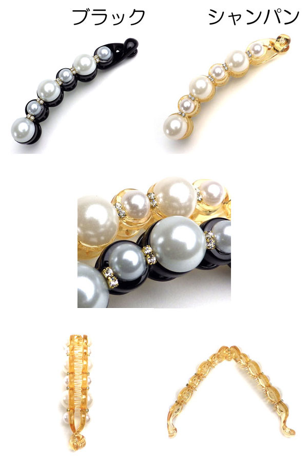 追跡可能メール便OK♪【パールとストーンのバナナクリップ】ヘアアクセサリー キラキラ ゴールド 黒ブラック シャンパンカラー 上品 華やか 結婚式 パーティー イベント オフィス まとめ髪 クリップ 簡単 レディース