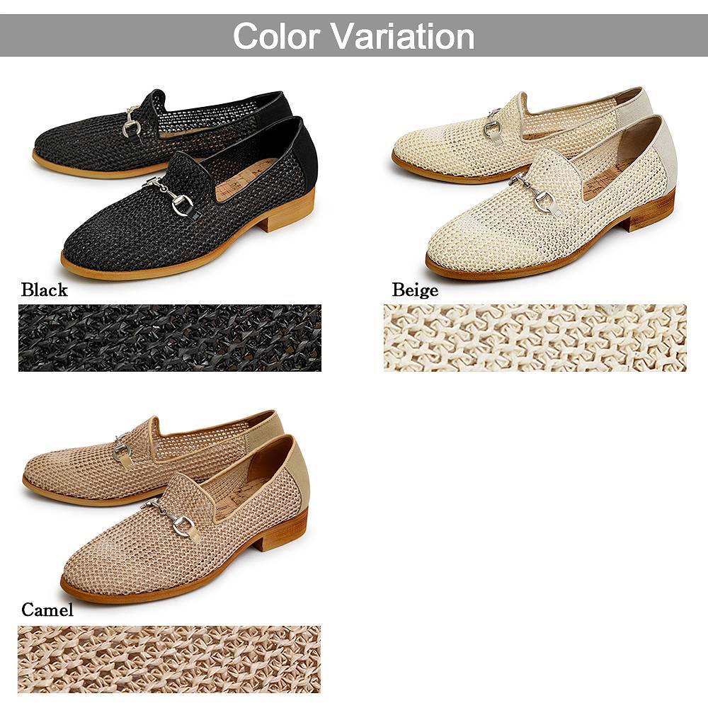 スマートなアーモンドトゥのラストの全面に、メッシュ素材を大胆に配置。