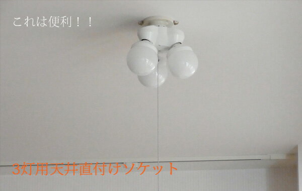 【照明/照明器具/おしゃれ/天井/天井照明/LED/シーリングライト/インテリア/ライト/玄関/小型/おすすめ/ソケット/灯具】トップページ > 照明 > 天井照明 > 直付け照明 トップページ > リビング・ダイニング > 〜8畳用照明 > 3灯用天井直付けソケット 3灯用天井直付けソケット 何とも便利なシーリングライトの登場です。